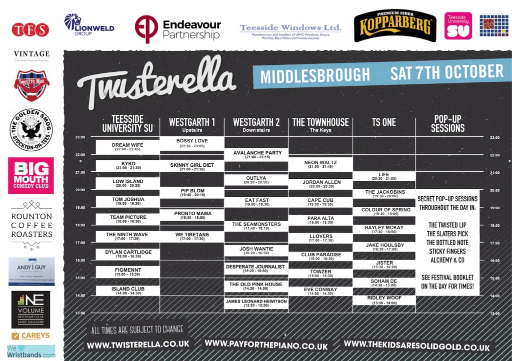 We’re delighted to reveal the stages and times for this year’s Twisterella Festival in Middlesbrough on Saturday 7th October: