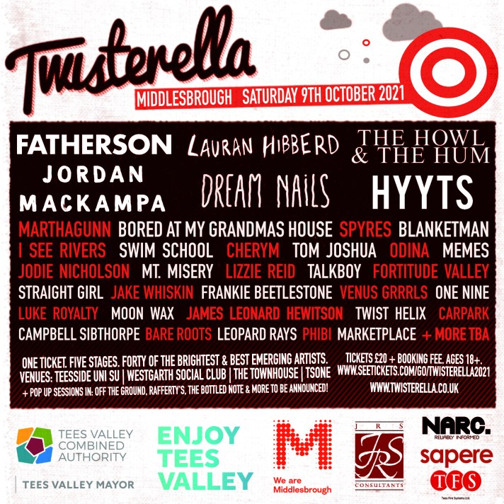 Co-promoter Henry Carden says: “We’re delighted to have added Fatherson as our final headliner for Twisterella 2021! They’re friends of the festival and we couldn’t ask for a better way to close the whole event; it’s gonna be emotional! Along with Lauran Hibberd, The Howl & The Hum, Jordan Mackampa and Dream Nails, this is without doubt our strongest set of headliners. With the likes of Bored At My Grandmas House, Tom Joshua and Marketplace joining the bill too, we can’t wait for people to discover their new favourite band in the heart of Middlesbrough this October.”